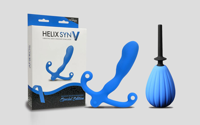 Aneros has released the Helix Syn V Blue Special Edition as well as reintroducing its Blue Prelude Enema Bulb Kit Special Edition to mark Prostate Cancer Awareness Month.