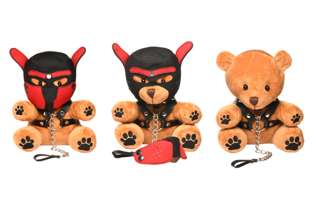 XR Brands has added the Pup Teddy Bear Plush to its Master Series collection of plush BDSM-themed teddy bears. The bear has light peach fur and wears a faux leather harness with metal O-rings along with a PU leather muzzle and hood. Attached to its collar is a metal chain leash.