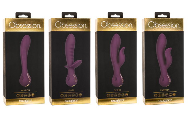 The four Obsession models are Passion, Lover, Desire, and Fantasy. Passion has a bulbous tip and a curved shaft; Lover is a dual massager with dual motors; Desire features a flickering action, while Fantasy is curved with a teaser.