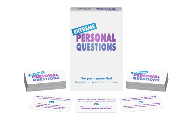 To play Extreme Personal Questions, players select a card and read one of the two questions to the group. Two players volunteer to answer, and the rest of the group votes on who gives the best answer. That player earns the card as a point, and the first to collect five is the winner.