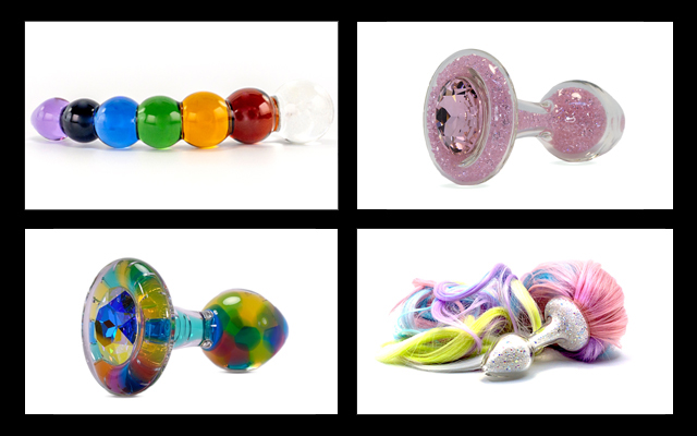 The Sparkle Butt Plug, featuring the company’s standard, short stem/small bulb plug design, is made from hollow, borosilicate tubing. Filled with crystals the original Sparkle Butt Plug with crystal base is currently available in seven colours, including red, black, blue, aurora borealis, gold, clear and pink.