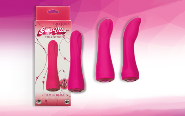 The Gem Vibes Collection from CalExotics is now available at Scala. The three vibes – Bliss, Curve, and Glider – are all waterproof, USB rechargeable, offer 10 vibration functions, and come with a memory chip that resumes the action where the user last left off.
