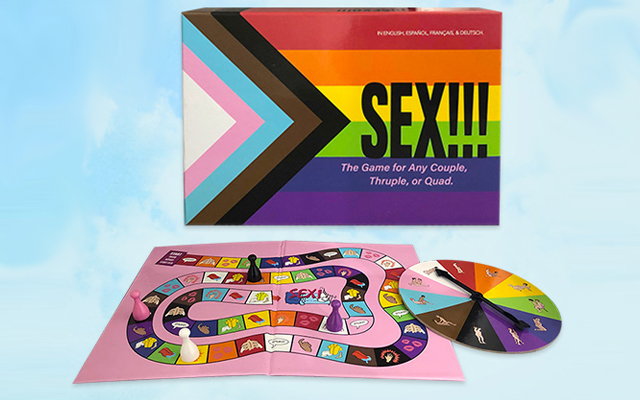 Sex!!! is a board game that utilises a spinner to determine how markers move around the game board. Three and four markers can be used when playing within a thruple or quad. The winner is the first player to hit the Sex! space at the end of the game board. That player uses the spinner to get a sex position. Extra spins are taken for each additional player in the game and Kheper says it’s all about fast-paced foreplay that quickly moves to sex.