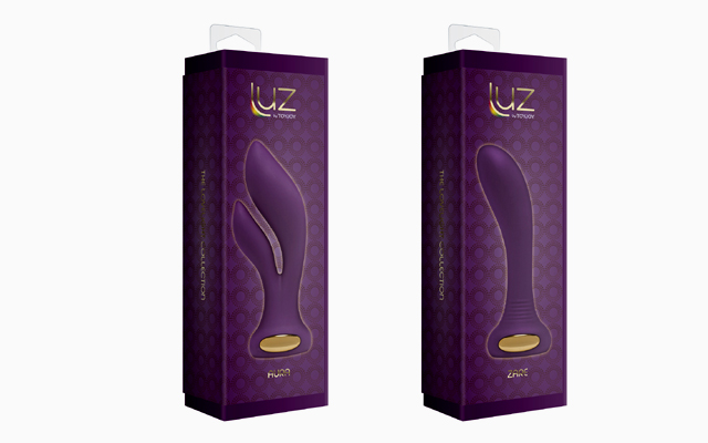 The Luz by ToyJoy collection includes the double-ended Flare stimulator, the Luminate vibrator, the Zare G-spot vibe, the Eclipse cock ring, plus the rabbit-style Splendor and Aura designs – all are made from silicone and available in purple or black.