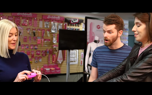 The premise of Toy Ride is to give viewers a background on the latest toys and where they come from, as well as document one couple’s experience with those products. Nikki and Daniel went home with Jimmyjane’s Ascend 7, Pipedream’s International Rockin’ Chair, King Cock, and a Sir Richard’s Element MS. The items were all used and enjoyed by the couple and their friends throughout the remainder of the episode.