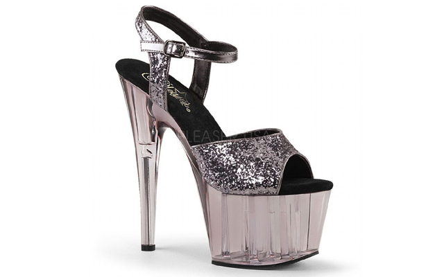 Three of the most recent lines taken on by Digimedia Solutions which, according to the firm’s Shalom Yaes, have met with a terrific response are Adore 710GT, Domina 108, and Delight 652. The Adore 710GT [pictured] is a platform ankle strap sandal available in bronze glitter/bronze tinted and it sports a 7” stiletto heel. It is available in UK sizes 2-9. Domina 108 is a wrap around knotted strap sandal with a 6” stiletto heel and it is available in UK sizes 2-13. Delight 652 is a two-tone peep-toe criss-cross platform sandal with contrast fishnet panels and a 6” stiletto heel. This is available in UK sizes 2-11.