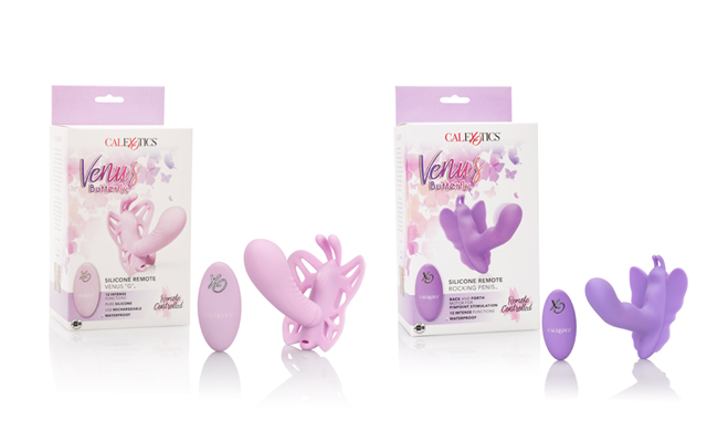 CalExotics has announced the release of two new remote-controlled Venus Butterflies. The Venus Butterfly® Silicone Remote Venus “G” ™ is described as being a petite, full contact butterfly with ridged pleasure probe ready to deliver both pleasing external teasing and a powerful G-spot massage, while the Venus Butterfly® Silicone Remote Rocking Penis™ offers a pleasure probe that rocks back and forth for G-Spot stimulation. They feature 12 functions of vibration, pulsation, and escalation and CalExotics says the remote has a range of 32.75’/10 m. Both devices can also be used hands-free in solo play as they can be operated independently of their remotes.
