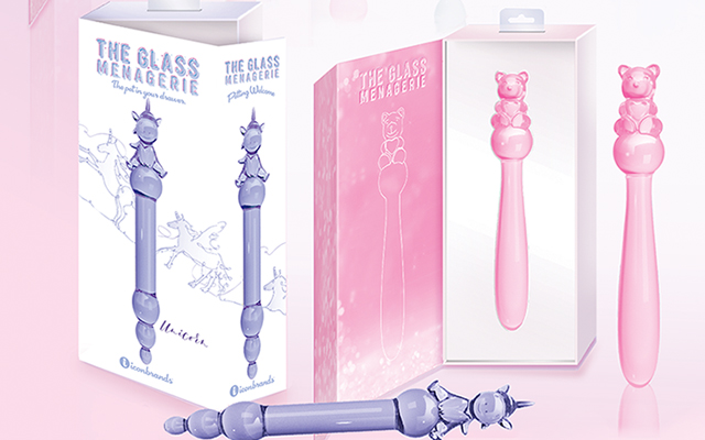 The latest launch from Icon Brands is Glass Menagerie, a collection of six glass massagers sporting cute little animals. There are three pink models (kitty, bunny, and teddy), two blue (butterfly and puppy), and one purple (unicorn), and they range in size from 7” to 9”.
