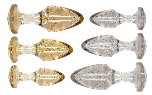 Butt plugs appear to be fashion items these days, with several manufacturers bringing the bling to their latest collections, and Shots has now unveiled its own take on the trend. Now available on the distributer’s Ouch! label are acrylic gold and silver sets of three, called Golden Glitter and Silver Glitter, respectively.