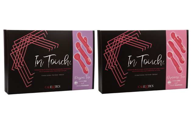 The CalExotics In Touch sets are now available from Scala and can be specified in either Dynamic or Passion varieties. Both sets contain a premium silicone vibrating base and three interchangeable heads, with the Dynamic version focusing on rotating and vibrating and Passion favouring sucking and vibrating.