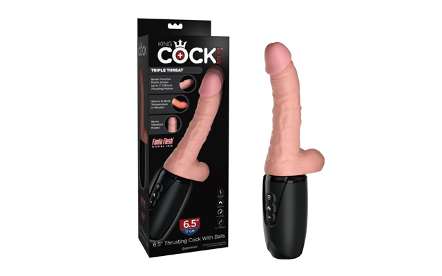 Pipedream has unveiled a new King Cock model, the King Cock Plus Triple Threat 6.5” Thrusting Dildo with Balls, and it’s the most technically sophisticated release in the range so far.
