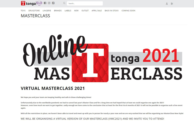 The 2021 Tonga MasterClass is open to everyone working in the pleasure products business, be they in retail, e-comm, sales, or influencer etc. Subscribe to the Virtual MasterClass 2021 through the Tonga website at www.tongabv.com/masterclass