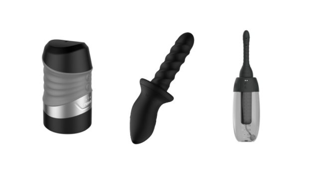 Ascend (pictured centre) is a thrusting and rotating silicone massager with a dual-action swirled shaft that rotates while moving up and down simultaneously, creating deep, rhythmic sensations that the brand says mimic intimate motion. The toy has five dual rotation/thrusting modes, is splashproof and rechargeable.