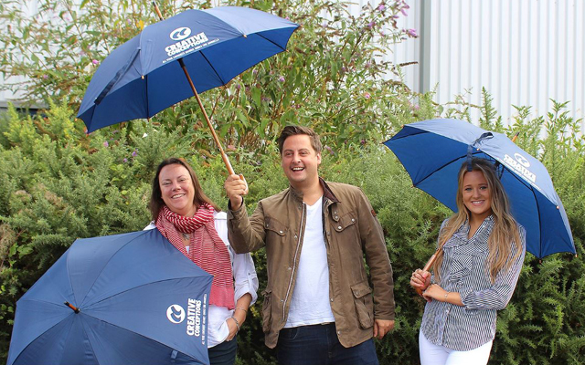 Keeping with the winter theme, pictured are members of the sales team with branded brollies which will be available free of charge to customers who visit the firm at EroFame this week. Creative Conceptions can be found on stand numbers 128-131 & 139.