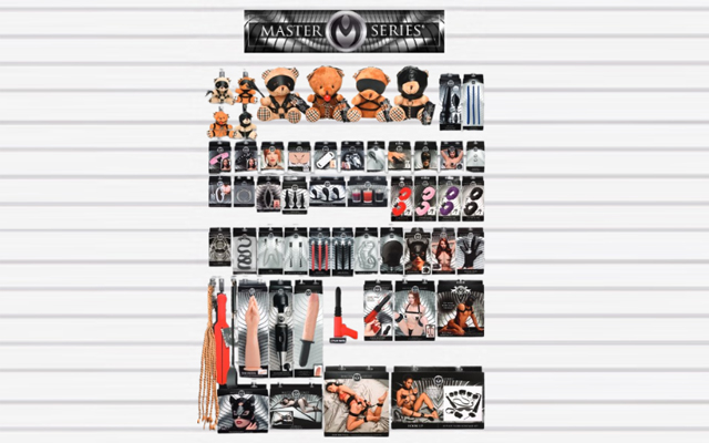 The package has a retail value of nearly $4,600 but is available to retailers for $2,298.42. Products include 10 collars, 10 hoods/masks, 8 Bondage Bears, 8 Bondage Bear keychains, 8 whips/floggers, 8 nipple clamps, 8 vibrators/dildos, 6 candles, 6 ball stretchers/c-rings, 6 restraint sets, 6 anal plugs, 4 c cages, and 4 vaginal stretchers.