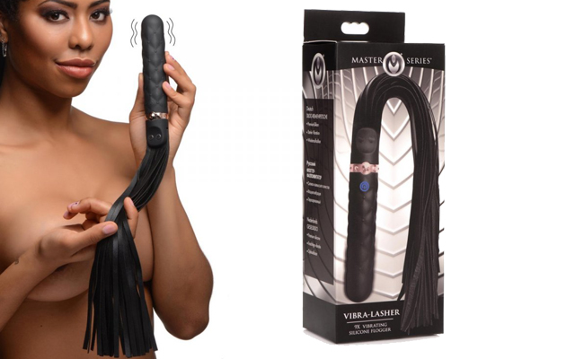 For those who like surprises, XR Brands has introduced the Vibra-Lasher to its Master Series collection. The 20” long flogger has a handle that doubles up as a dildo, which offers three speeds and six patterns of vibration.